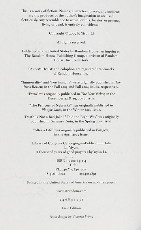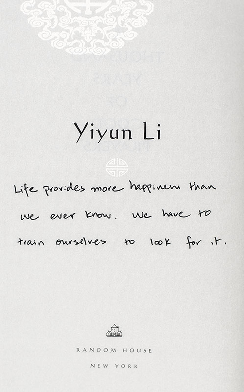 "Life provides more happiness than we ever know. We have to train ourselves to look for it": First Edition of A Thousand Years of Good Prayers; Lengthily inscribed by Yiyun Li
