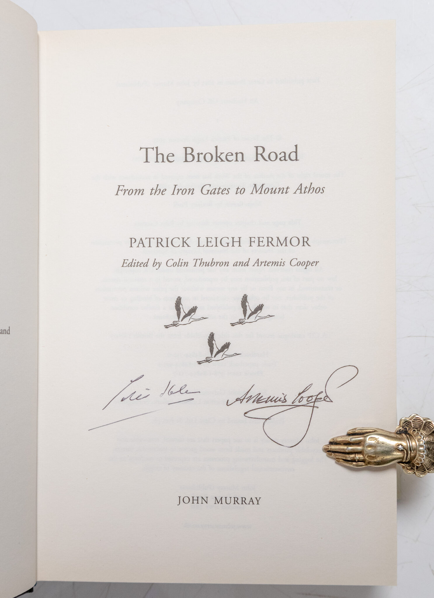 First Editions of Each Work in Patrick Leigh Fermor's Trilogy; Between the Woods and the Water Signed by Him and The Broken Road signed by editors Artemis Cooper and Colin Thubron; A Time of Gifts Inscribed by Him To Daphne Fielding with a full page sketch
