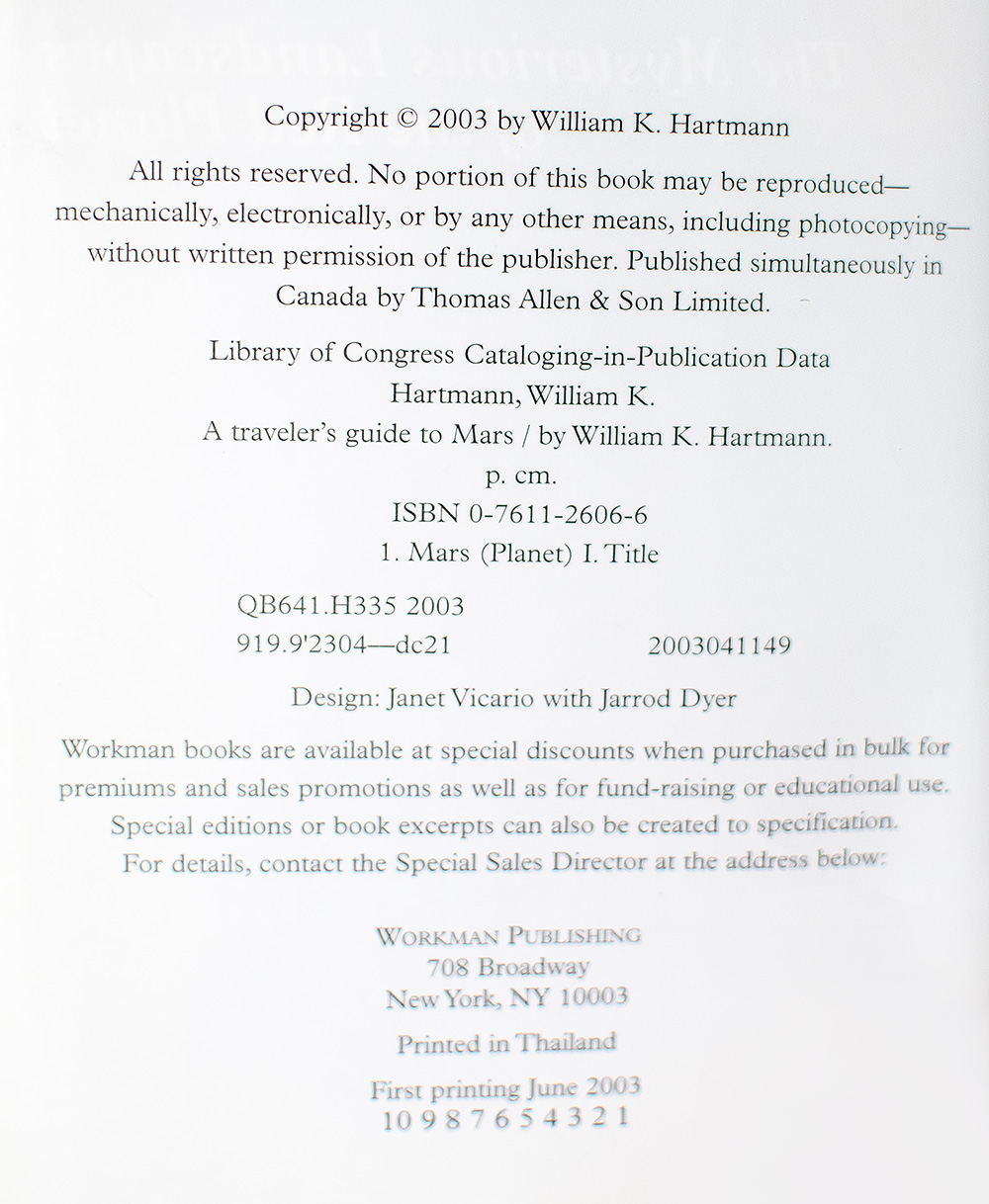First Edition of A Traveler's Guide to Mars; Inscribed by William K. Hartmann to Apollo 13 Astronaut James Lovell