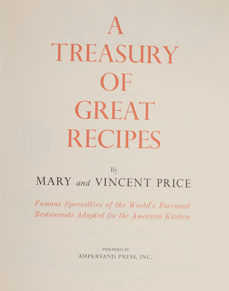 First Edition of A Treasury of Great Recipes; Warmly Signed by Vincent Price
