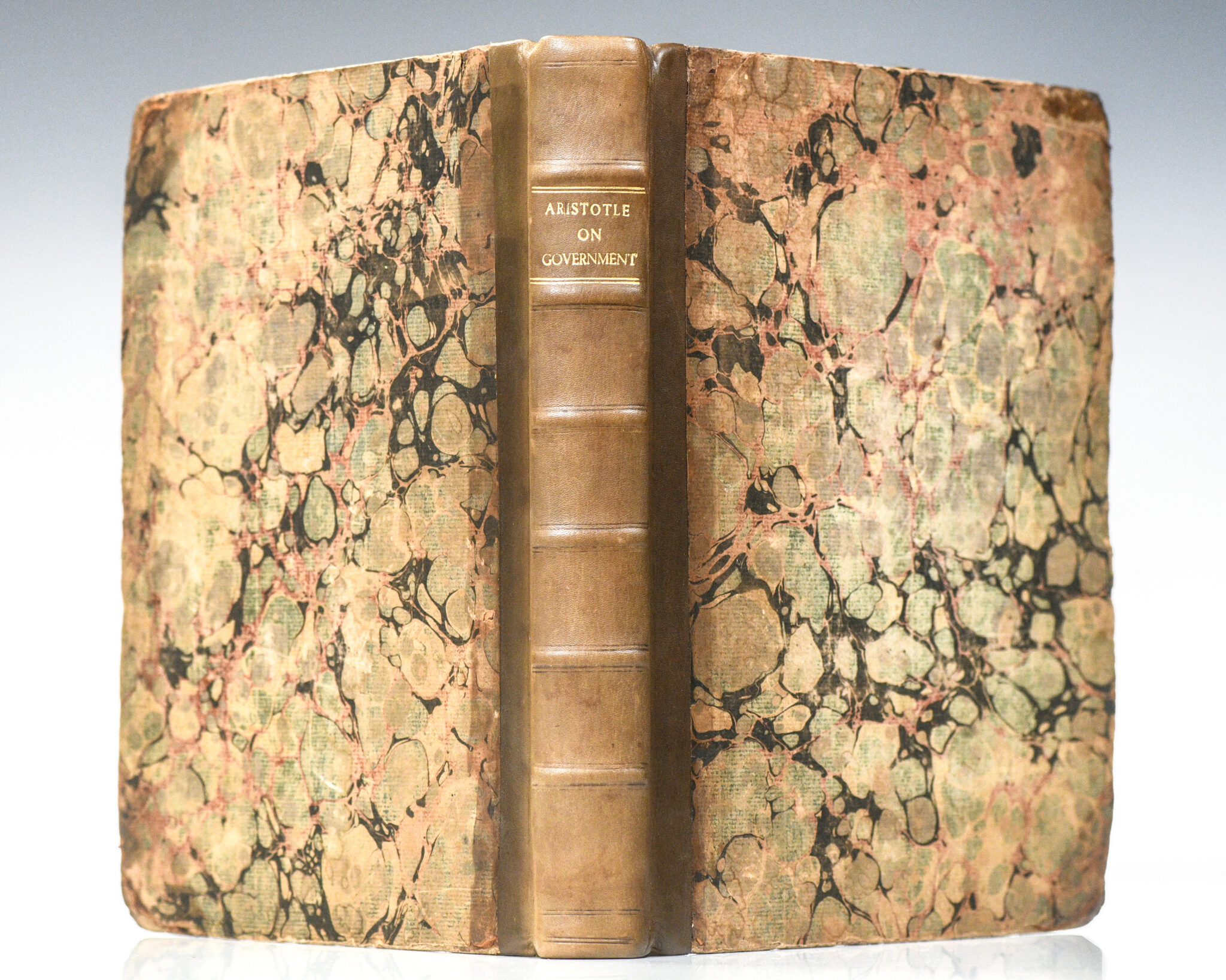 First edition in English of this important work on government by Aristotle. Quarto, bound in contemporary half calf over marbled boards, full, morocco spine label, raised bands. In very good condition. Translated by William Ellis. An exceptional example of this cornerstone work.
