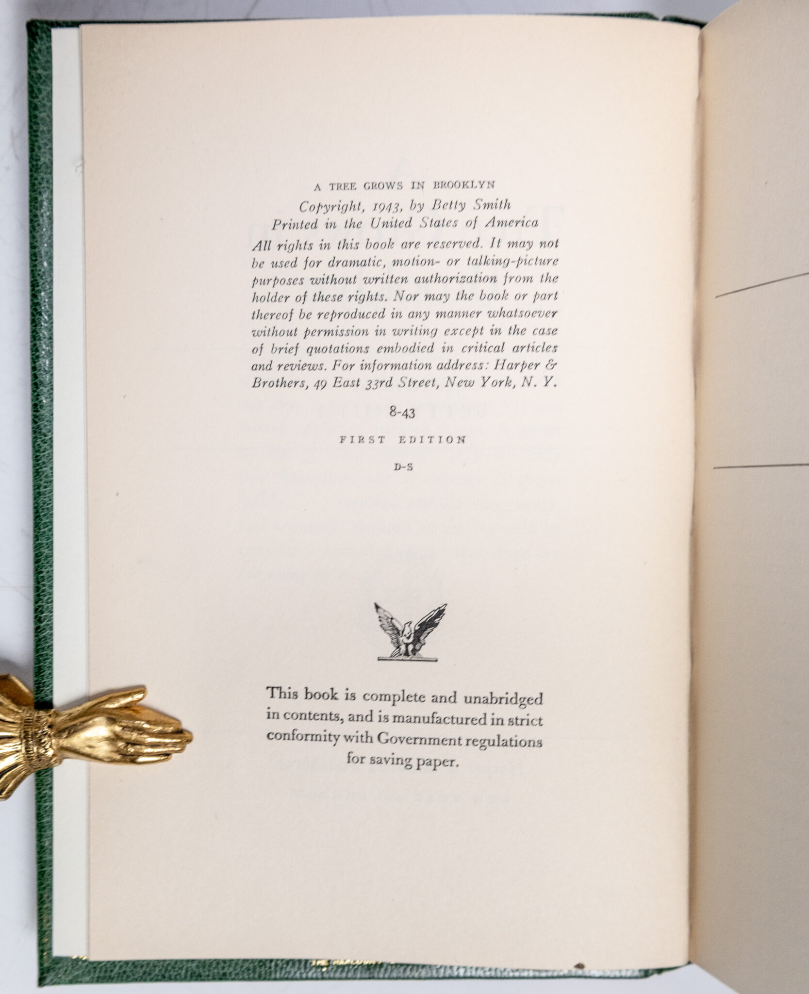 First Edition of A Tree Grows In Brooklyn; Inscribed by Betty Smith and finely bound by the Harcourt Bindery