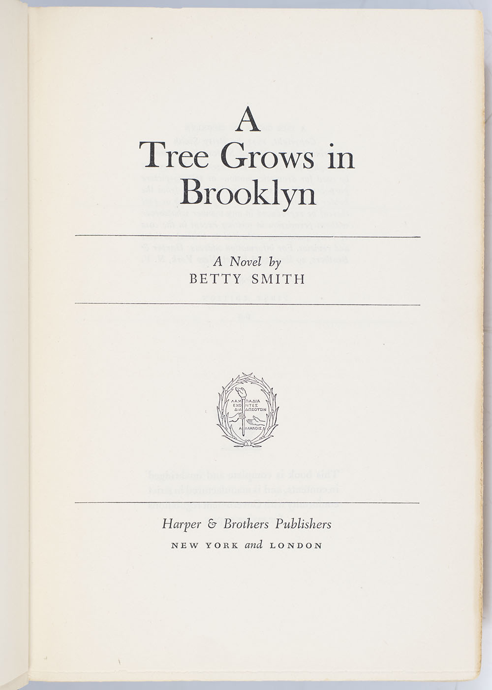 First Edition of Betty Smith's A Tree Grows In Brooklyn