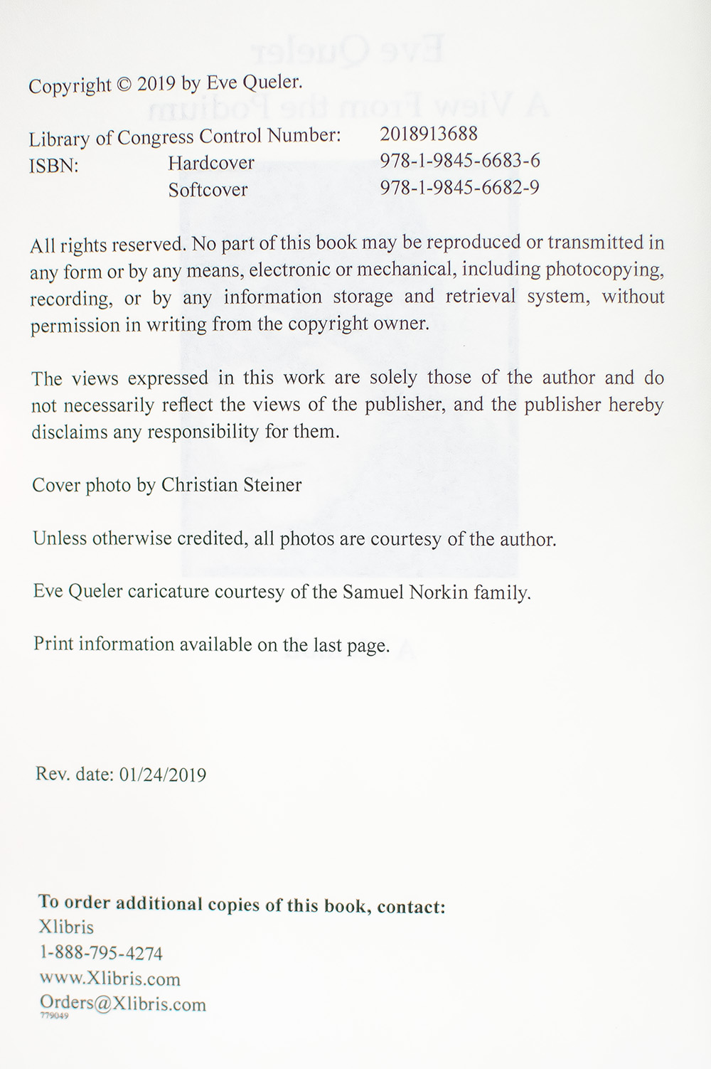 "Dear Ruth To a true opera lover! With great admiration for you remarkable achievements": First Edition of A View from the Podium; inscribed by Eve Queler to Ruth Bader Ginsburg