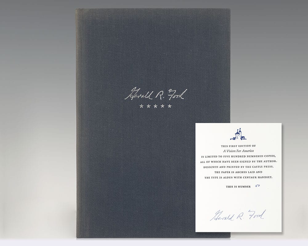 "Let's talk about the future. We have had miseries before. But we've always overcome before": Signed limited first edition of Gerald Ford's A Vision for America; One of 500 numbered copies signed by him