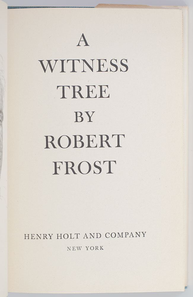 First Edition of Robert Frost's A Witness Tree; Inscribed by him