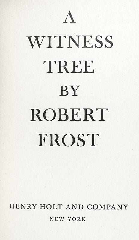 The poetry of Robert Frost occupies a central and commanding position in American literature, recognition of his stature has been confirmed by three Pulitzer Prizes and the award of the gold medal of the National Academy of Arts and Letters - an honor which the Academy has conferred on a poet only three times in its history. Robert Frost's seventh book of poetry, A Witness Tree, requires no introduction, its lyrics are sharply beautiful and as richly and surprisingly wrought as Frost has ever written.