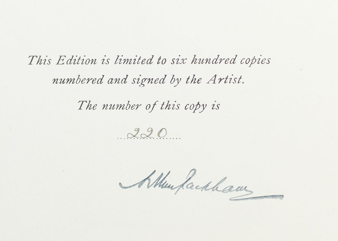 The Deluxe signed limited edition of Nathaniel Hawthorne's A Wonder Book; one of 600 copies signed by Arthur Rackham