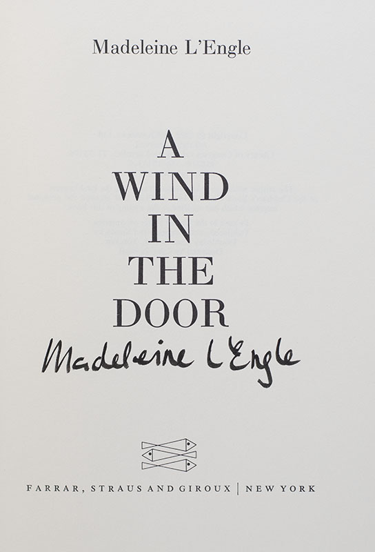 First editions of each novel in L'Engle's acclaimed Time Quintet. Octavo, original cloth. A Wrinkle in Time and A Wind at the Door are signed by the author. The three remaining volumes are each inscribed by her. Each volume is near fine to fine in near fine dust jackets. A Wrinkle in Time is without the Newbery Award-winning seal to the front panel. Jacket design by Ellen Raskin. An exceptional set, easily the nicest we have seen, most rare and desirable signed and in this condition.