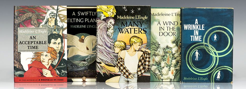 First editions of each novel in L'Engle's acclaimed Time Quintet. Octavo, original cloth. Each volume is near fine to fine in near fine dust jackets. A Wrinkle in Time is without the Newbery Award-winning seal to the front panel. Jacket design by Ellen Raskin. Housed in a custom half morocco clamshell box. An exceptional set, most rare and desirable signed and inscribed.