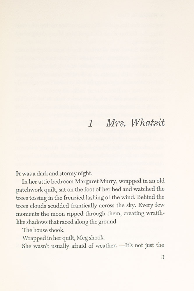 First edition, tenth printing of the author's Newbery award-winning novel. Octavo, original cloth. Boldly signed by Madeleine L'Engle on the half-title page. Fine in a near fine dust jacket with a touch of shelfwear. Jacket design by Ellen Raskin. An exceptional signed example.