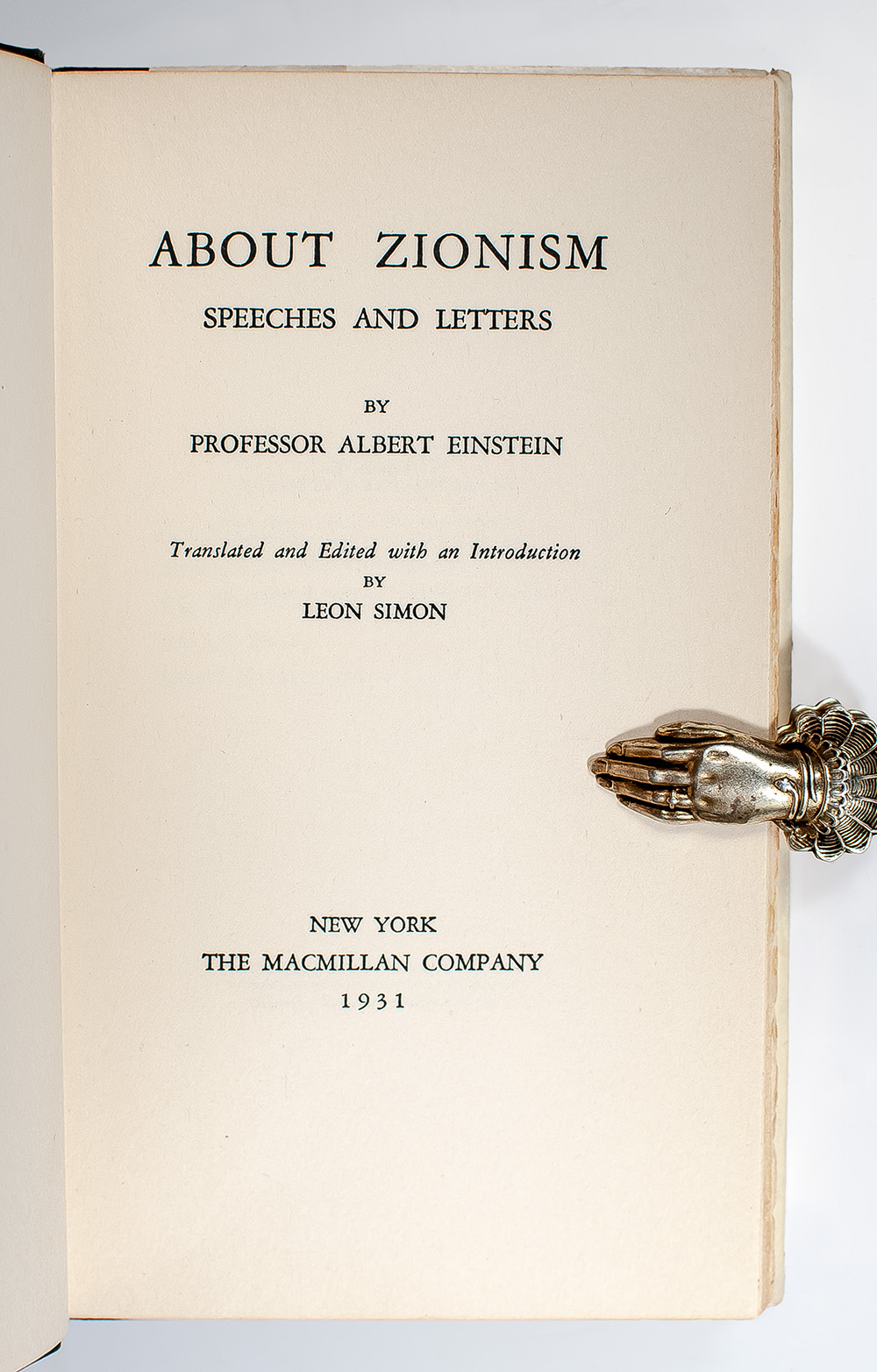 "Long before the emergence of Hitler I made the cause of Zionism mine because through it I saw a means of correcting a flagrant wrong": Rare first edition of About Zionism; Signed and dated by Albert Einstein in the Year of Publication