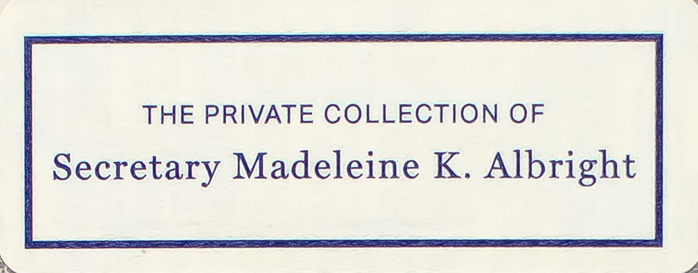Modern Libraray editon of this story that explores the themes of race, identity, and the burden of history. 18 mo, original publisher's cloth. From the library of Madeleine K. Albright. Albright was the first woman to serve as the U.S. Secretary of State. She acted under President Bill Clinton from 1997 to 2001, leading the United States through foreign policy in the Middle East with the endorsement of military action in Iraq. At the 1998 NATO summit, Albright coined the “3 Ds” of NATO, “which is no diminution of NATO, no discrimination and no duplication – because I think that we don’t need any of those three “Ds” to happen.” After her tenure as Secretary of State, she served as chair of the consulting Albright Stonebridge Group and was the Michael and Virginia Mortara Endowed Distinguished Professor in the Practice of Diplomacy at Georgetown University’s School of Foreign Service. For Albright’s contributions to foreign policy and relations that defined a century, President Barack Obama awarded her the Presidential Medal of Freedom in 2012. In very good condition. Bookplate to the front pastedown from, “The Private Collection of Secretary Madeleine K. Albright.”