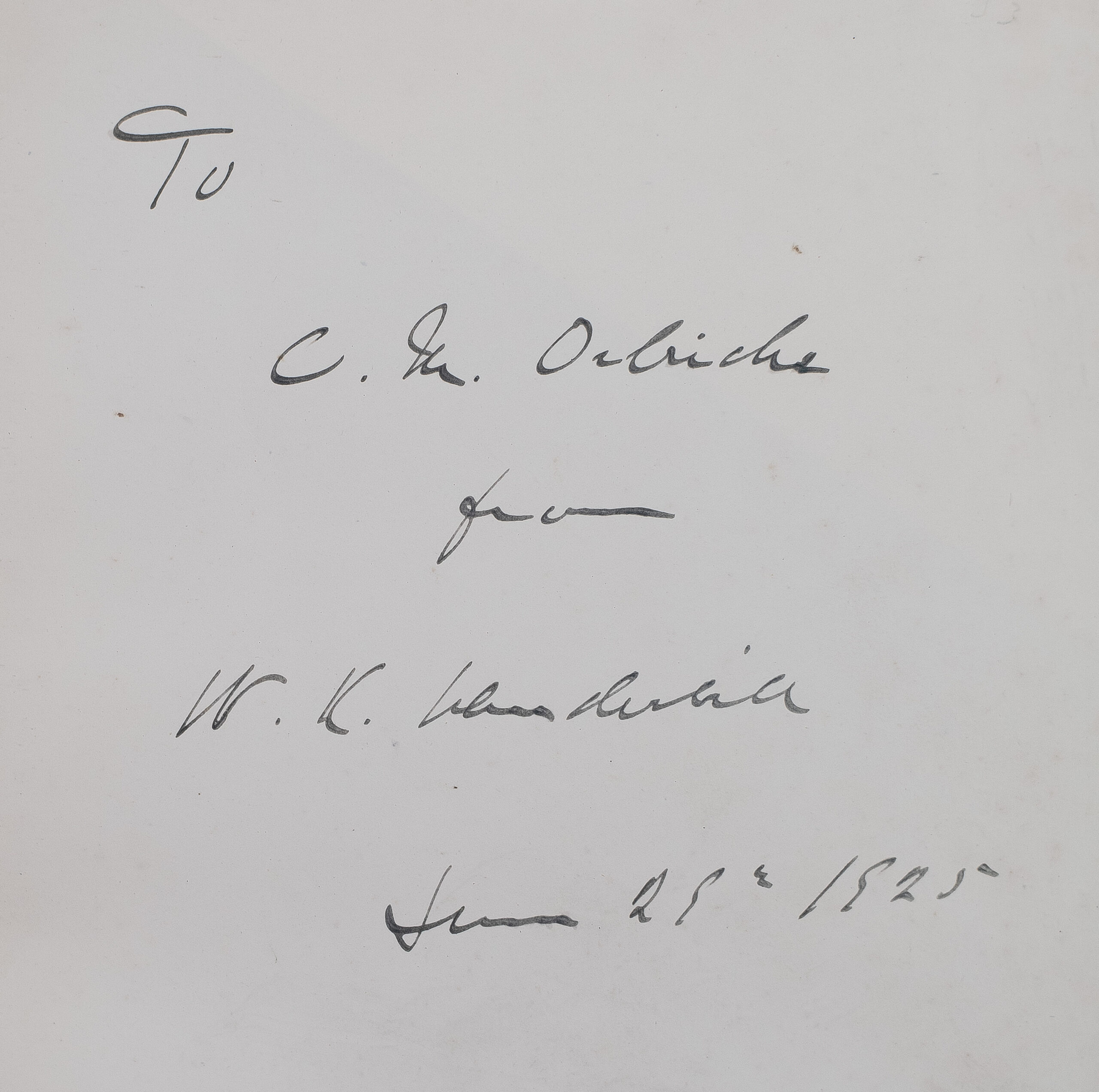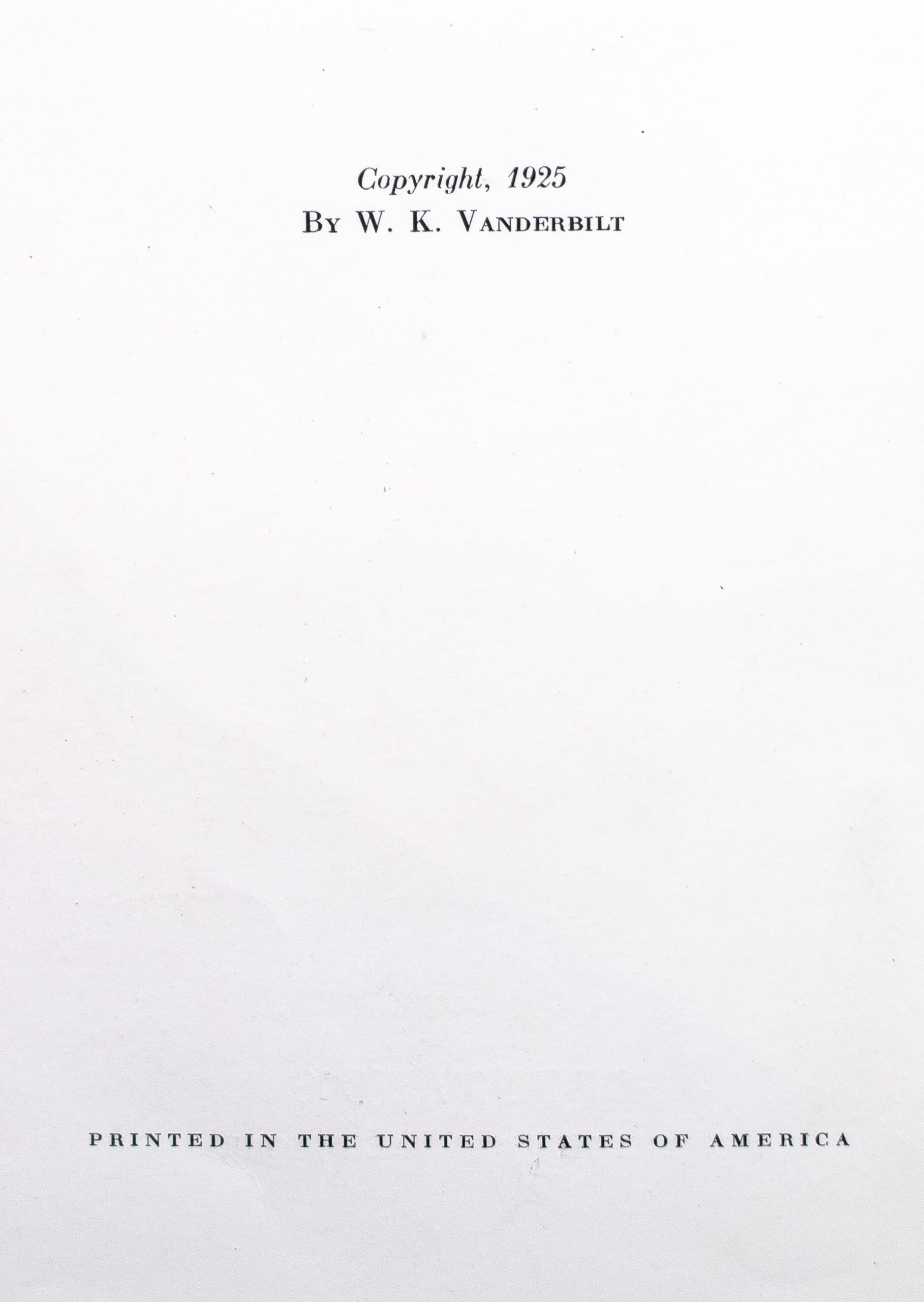 First edition of Vanderbilt's account of his 1924 three-month summer cruise aboard the diesel yacht Ara. Octavo, original publisher's cloth, illustrated with plates and maps. Presentation copy, inscribed by the author on the front free endpaper in the year of publication, "To C. M. ... from W. K. Vanderbilt June 26th 1925." In very good condition. Uncommon signed and inscribed.