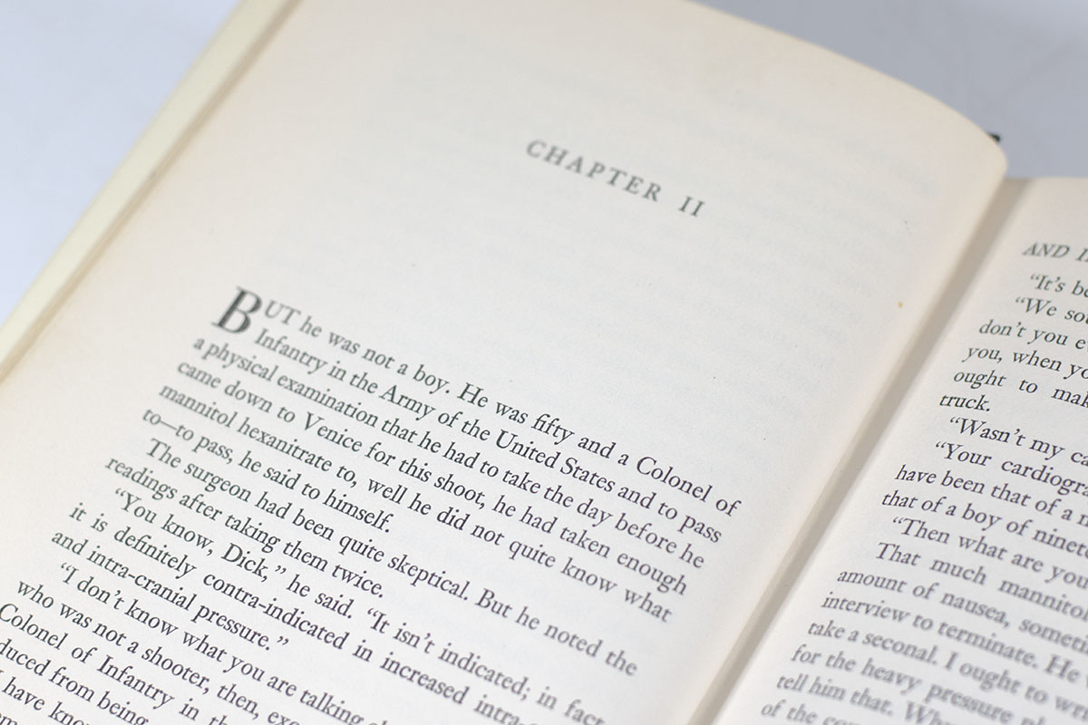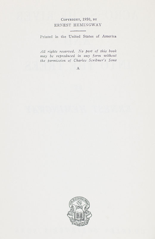 "I would take anything I love and throw it off the highest cliff you ever saw and not wait to hear it bounce": First Edition of Across the River and Into the Trees