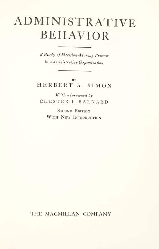 Named by Public Administration Review as "Book of the Half Century," Administrative Behavior is considered one of the most influential books on social science thinking, and was referred to by the Nobel Committee as "epoch-making."