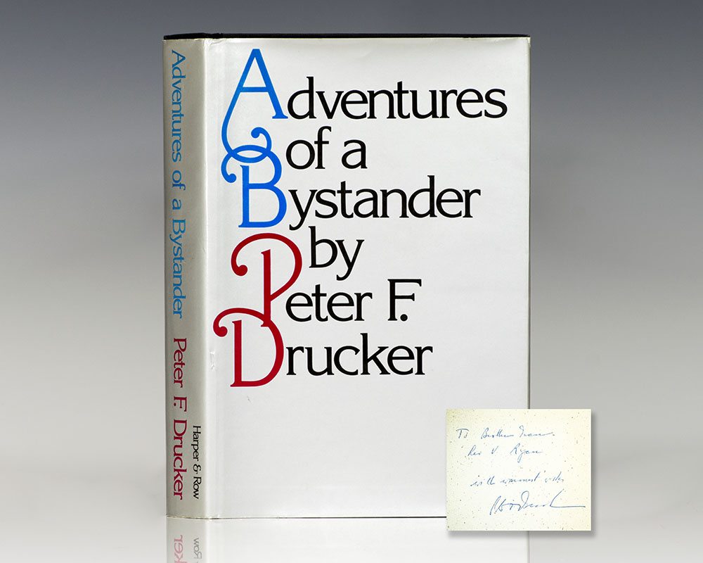 "The best way to predict the future is to create it": First Edition of Peter Drucker's Adventures of a Bystander; Inscribed by Him