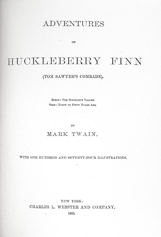 “I couldn’t bear to think about it; and yet, somehow, I couldn’t think about nothing else": First Edition of Mark Twain's Adventures of Huckleberry Finn