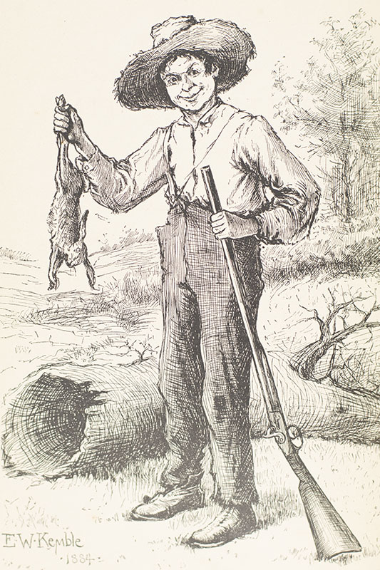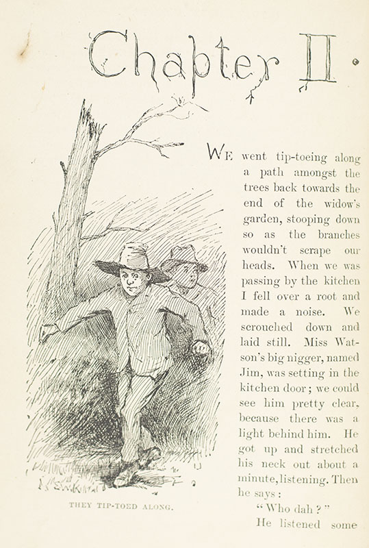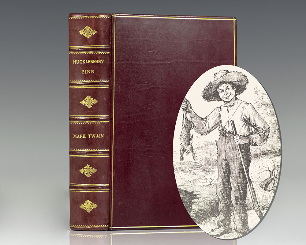 First English edition, preceding the first American edition, of "the most praised and most condemned 19th-century American work of fiction" (Legacies of Genius). Octavo, bound in full morocco, gilt titles and tooling to the spine, raised bands, marbled endpapers, with the original cloth laid down in the rear, with 174 illustrations by Edward W. Kemble. The English edition preceded the American by a few months and was made from sheets sent by American edition publisher Webster. In near fine condition, owner name.