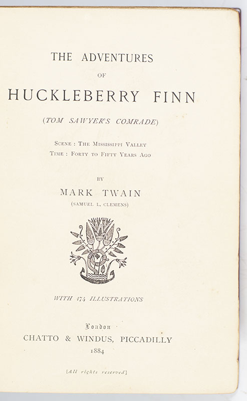 First british Edition and True First of MARK TWAIN'S ADVENTURES OF HUCKLEBERRY FINN