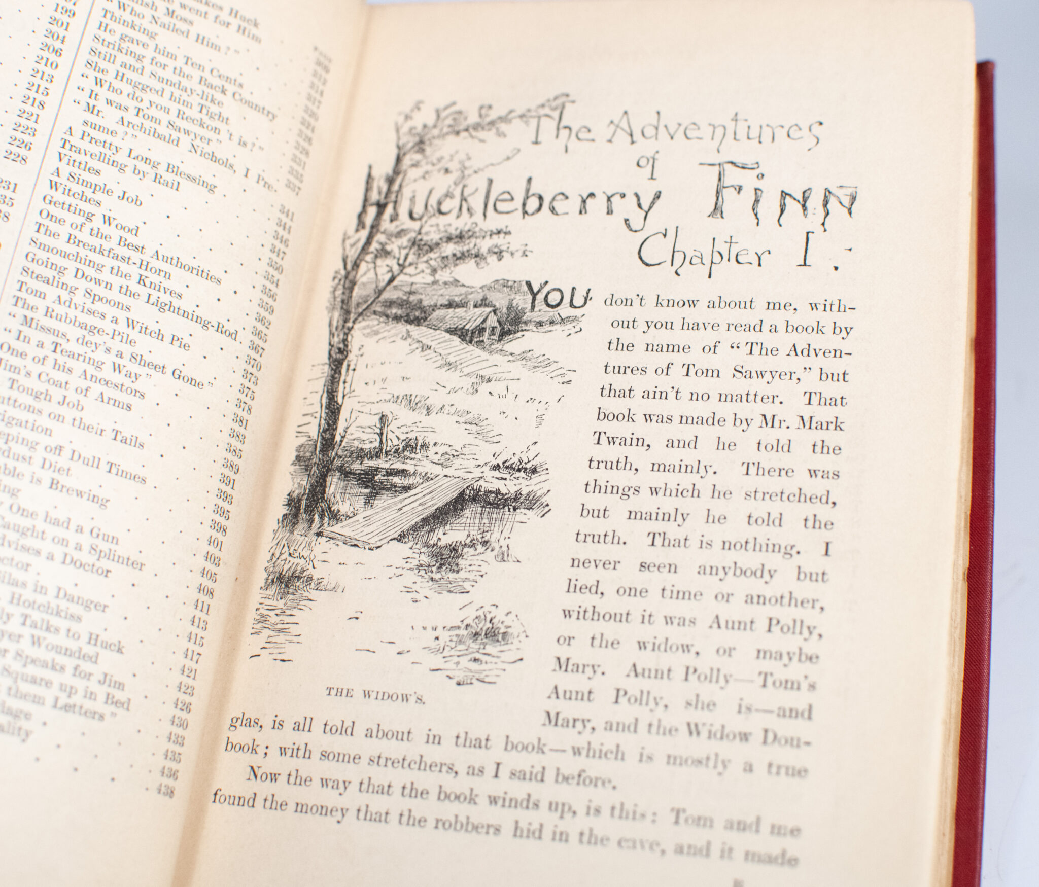"THE MOST PRAISED AND MOST CONDEMNED 19TH-CENTURY AMERICAN WORK OF FICTION": FIRST ENGLISH EDITION OF HUCKLEBERRY FINN, PRECEDING THE FIRST AMERICAN EDITION