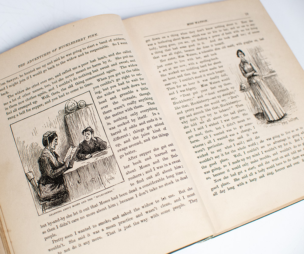 ONE OF ONLY A HANDFUL OF THE EARLIEST POSSIBLE ISSUE: FIRST EDITION, EARLIEST POSSIBLE ISSUE OF MARK TWAIN'S ADVENTURES OF HUCKLEBERRY FINN; IN EXCEPTIONAL CONDITION