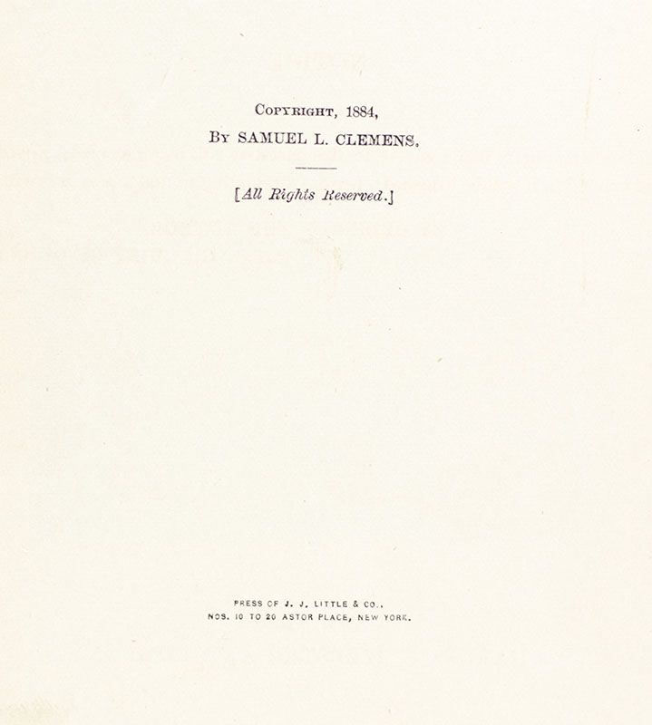 Early printing of Twain's masterpiece, inscribed by Mark Twain. Octavo, bound in half buckram by Roycroft with paper labels to the spine, tissue-guarded frontispiece photogravure plate of Gerhardt's bust of Clemens, one hundred and seventy-four illustrations by E. W. Kemble. Presentation copy, inscribed by the author on the title page, "To Mr. Garth W. Cate: Taking the pledge will not make bad liquor good, but it will improve it. Truly Yours, Mark Twain, Nov. 25/06." With a lengthy letter of provenance dated October 14, 1964 and signed by the recipient which reads in part, "Dear Mr. Jacobs, If I had been younger and could have carried out a study of some of Mark Twain's motives and acts, I never would have parted with my cherished old copy of the first printing of Huckleberry Finn. This was the first book given to me by my father... In 1906-1907 I was a lecture manager for Elbert Hubbard, the Sage of East Aurora, whose quasi-socialist group The Roycrofters was quite famous as an arts and crafts enter at East Aurora, New York. By that time the HUCK FINN was loose in its covers... Elbert Hubbard saw the book on my desk when I brought it in to have it rebound in the Roycroft Bindery. Said he, "No author could resist seeing such a well worn volume testifying to the delight it had given many readers. Why don't you send it down to Mark Twain and ask him to inscribed it. I'll sign and send Mark a few of my own books along with it, thus salting the mine for you." So I sent HUCK back to its spiritual father, and when it returned I was somewhat shocked, having been sent to a temperance Sunday School by a whiskey fearing mother, to find that he had inscribed it "To Mr. Garth W. Cate - Taking the pledge will not make bad liquor good, but will improve it." (Incidentally it was several years after that before I took my first drink. I am an abstainer today). Later on I was to marry a Christian Science practitioner, and when she saw this inscription she exclaimed: Why, that is the most immoral thing I ever saw! How could a great author send such a sentiment to a young man?" A careful search of Mark Twain's writings revealed that he had a deep-seated lifetime aversion for pledges, especially when they had been obtained under pressure from those of an older generation. It seems when Mark was a boy in his early teens, his mother and aunt talked and pressured him into signing a pledge not to touch alcohol in any from. Later he was to refer to this as "A ball and chain clanking behind him down the years of time." He hated such restrictions, especially when thrust upon him while immature." In very good condition. With the original publisher’s decorated green cloth cover bound in and three rare portraits of Twain tipped in. With two further letters of provenance and several period Twain-related clippings adhered to several pages. Housed in a custom half morocco clamshell box. An exceptional presentation copy with noted provenance.