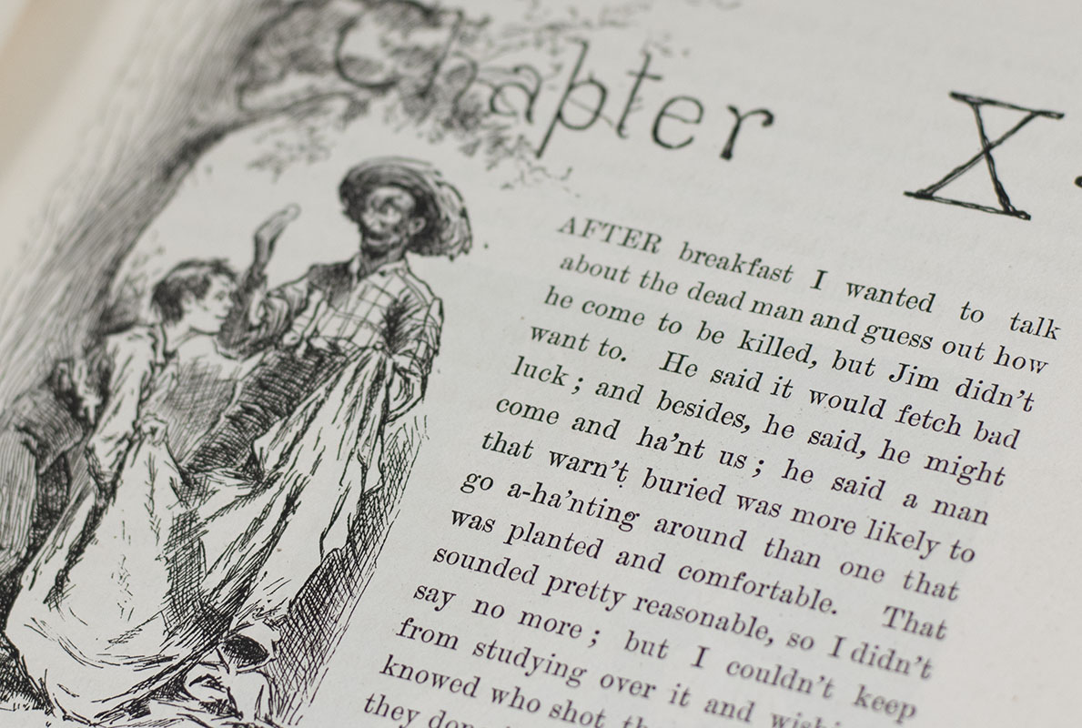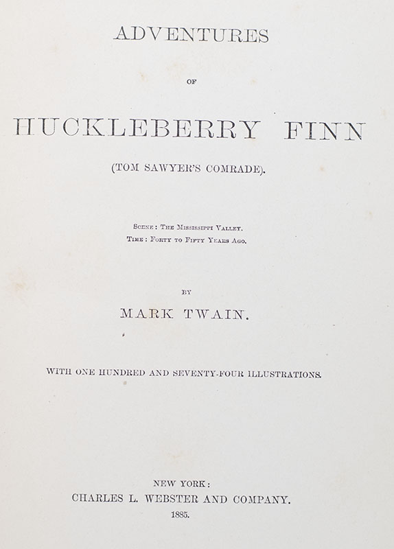 FIRST EDITION, FIRST PRINTING OF MARK TWAIN'S ADVENTURES OF HUCKLEBERRY FINN; FROM THE LIBRARY OF WILLIAM SAFIRE