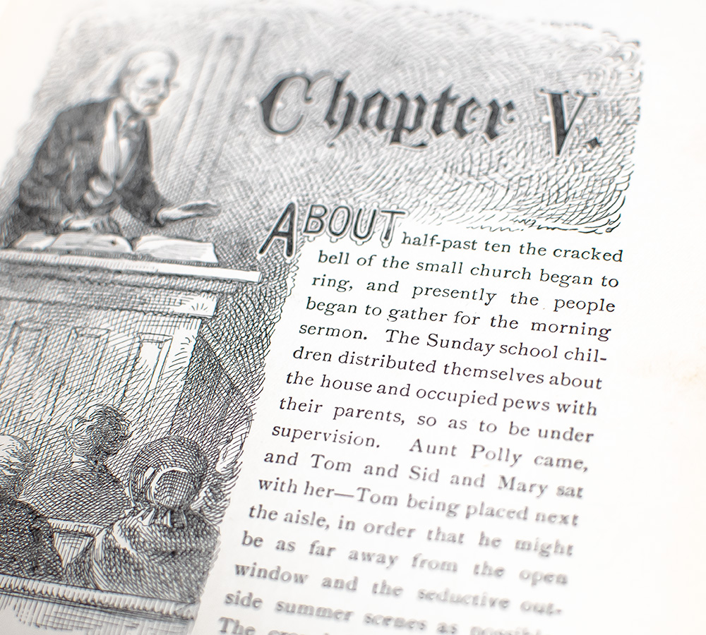 Popular and controversial at the time of publication in 1876, Mark Twain’s masterpiece The Adventures of Tom Sawyer has been adapted into dozens of film, television and theatrical productions. The quintessential tale of American boyhood established one of the most memorable characters in American literature who appeared in three later sequels including Twain’s other most notable work, The Adventures of Huckleberry Finn. “The first novel Mark Twain wrote without a co-author, Tom Sawyer is also his most clearly autobiographical novel enlivened by extraordinary and melodramatic events, it is otherwise a realistic depiction of the experiences, people and places that Mark Twain knew as a child” (Rasmussen, 459).