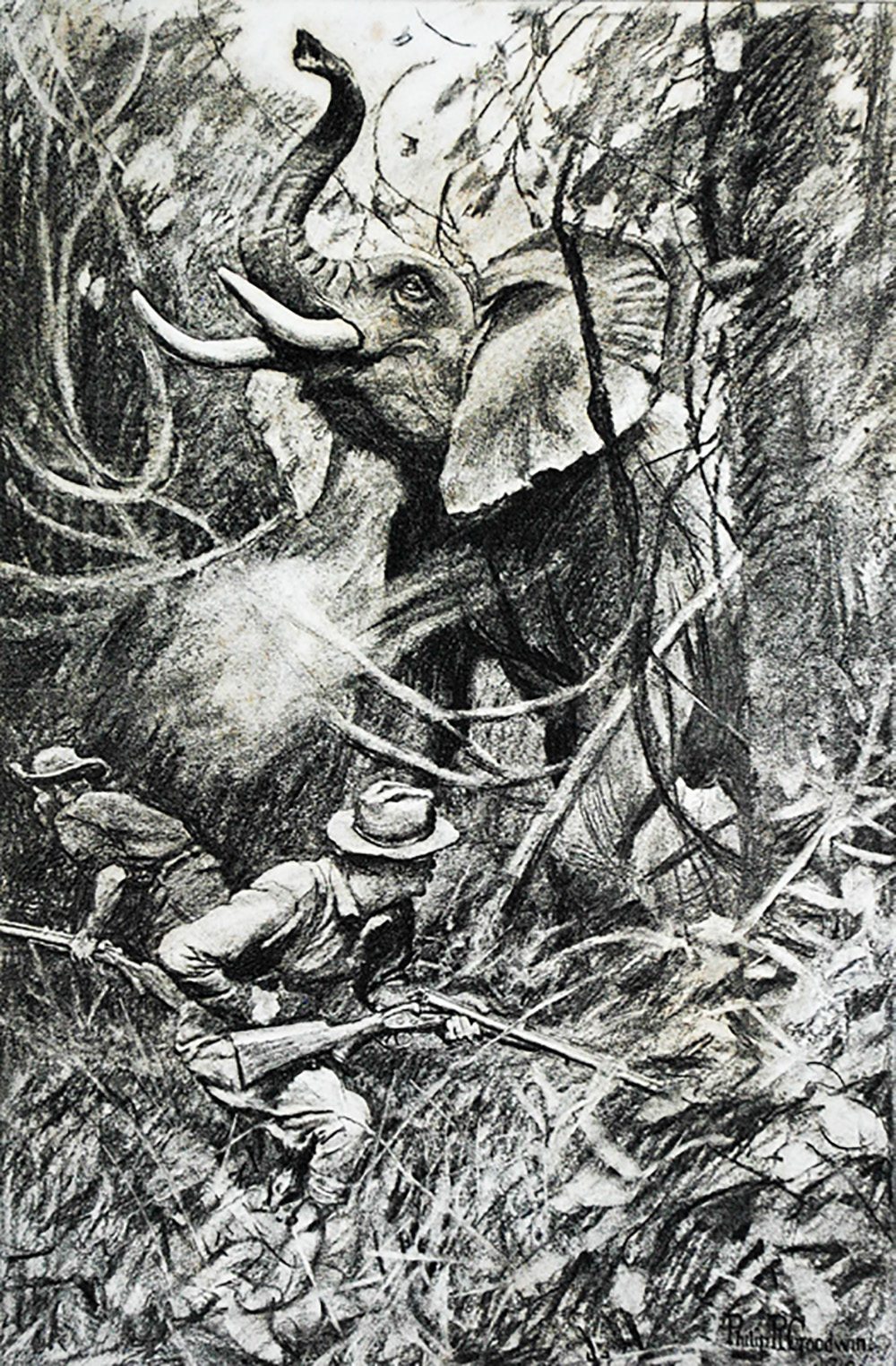"One of the most famous of all big-game hunting epics, this, with its larger than life sportsmen, was almost continuously in print until the 1930s. In British East Africa, Roosevelt hunted lion and plains game on the Kapiti Plains, while, in the Bondoni hill country, he collected rhinoceros and giraffe. On Juja Farm, his son Kermit faced leopard, while Teddy bagged rhino and hippopotamus. On the Kamiti River, buffalo were taken. Near the Sotik, additional rhino and lion were hunted, with elephant bagged near Mt. Kenia. On the Guaso Nyiro, giraffe and a variety of plains game were shot. Further adventures included hunting elephant near Lake Nyanza, rhino and plains game in the Lado, and eland on the Nile. Roosevelts total bag was enormous even by the liberal standards of that era" (Czech, 138-39).