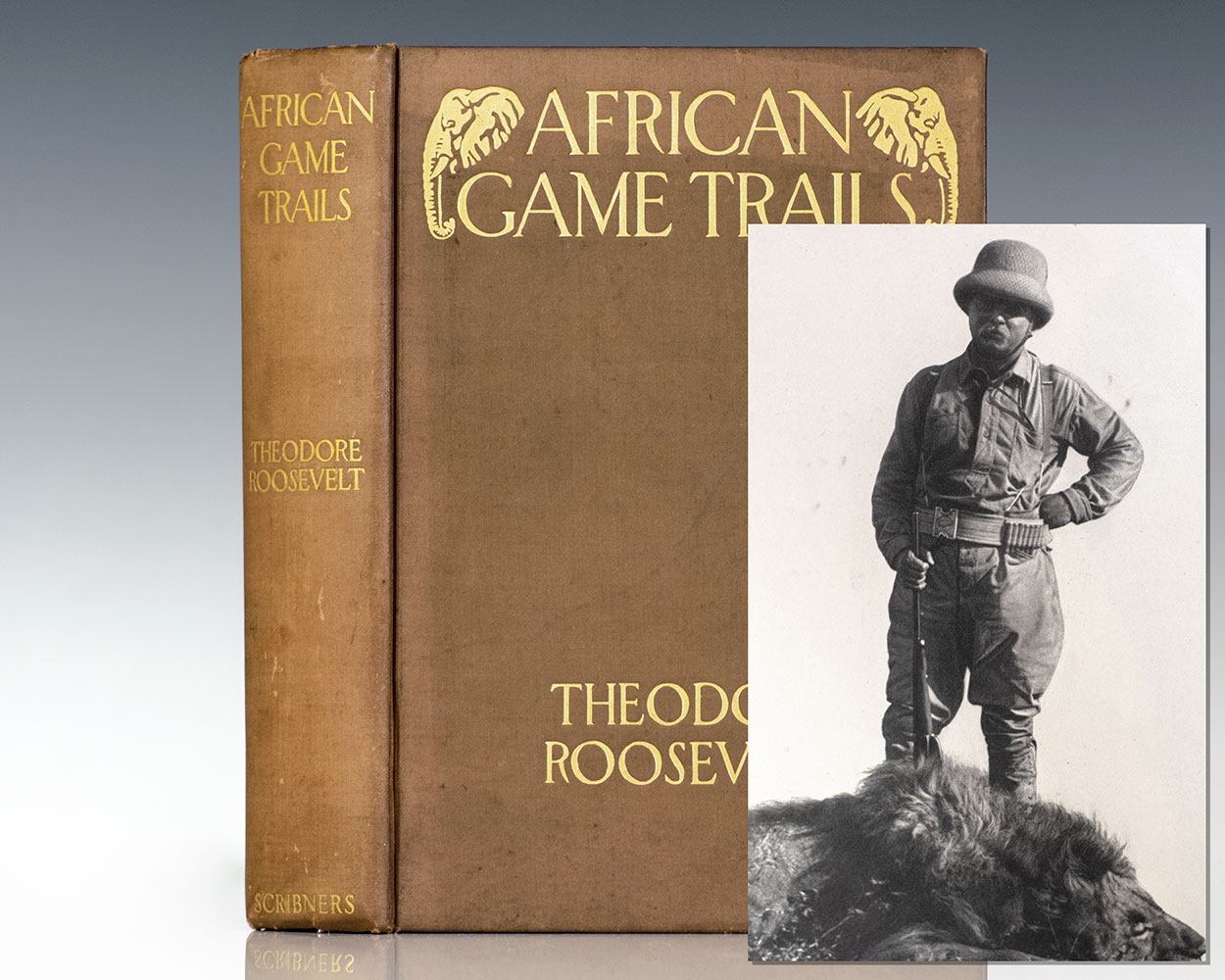 First edition of Theodore Roosevelt's classic work. Octavo, original cloth, gilt top edge, photogravure frontispiece, illustrated, 48 plates, map of Roosevelt's route and hunting trips in Africa. In near fine condition with light rubbing to the extremities. An exceptional example.