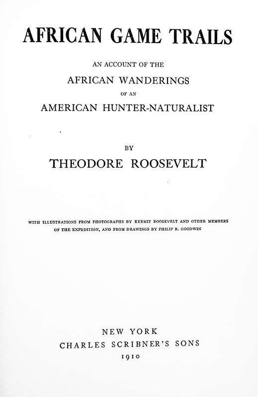 "There is delight in the hardy life of the open": First Edition of Theodore Roosevelt's African Game Trails