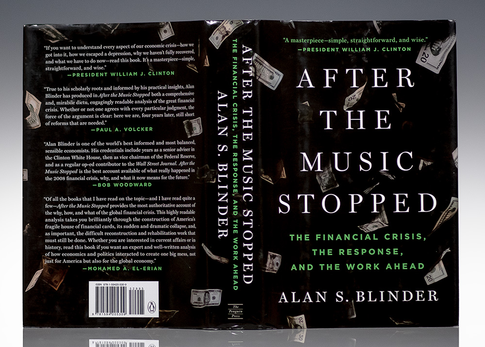 First edition of Blinder's After The Music Stopped: The Financial Crisis, The Response, And The Work Ahead; Signed by him