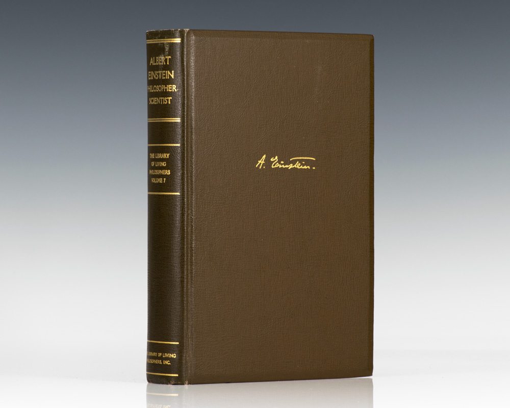 Signed limited first edition, one of 760 copies signed and dated "Albert Einstein ‘49." Octavo, original brown cloth, top edge gilt. The book is in fine condition, the slipcase is in very good condition shows some rubbing. Edited by Paul Arthur Schhilpp. Lacking the slipcase.