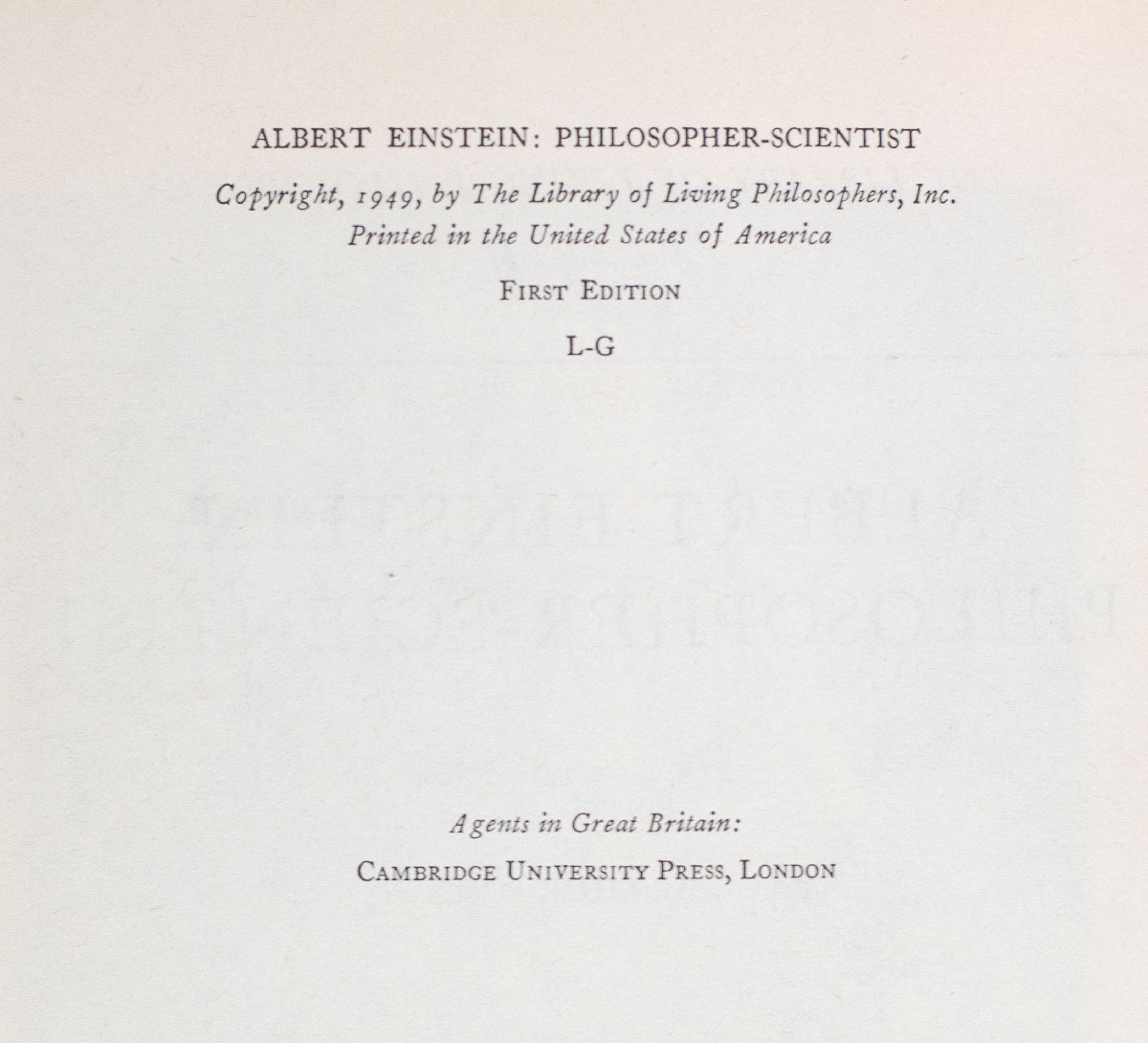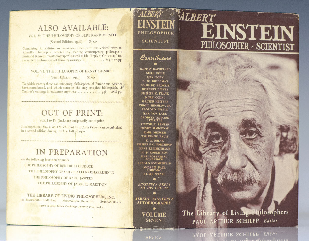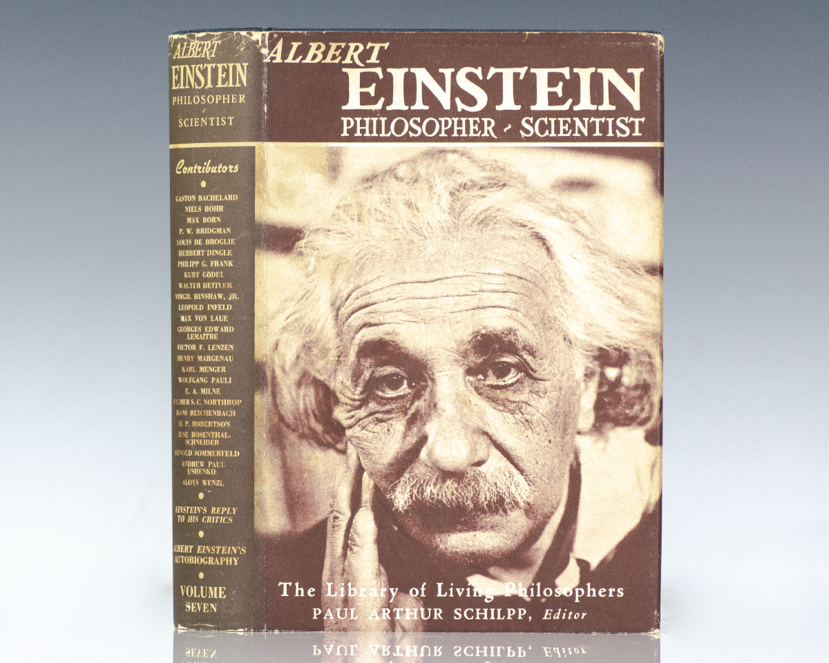 First edition of Einstein's singular autobiography. Octavo, original cloth, frontispiece of Einstein by Yousuf Karsh. Edited by Paul Arthur Schilpp. Near fine in a near fine dust jacket. Uncommon in this condition.