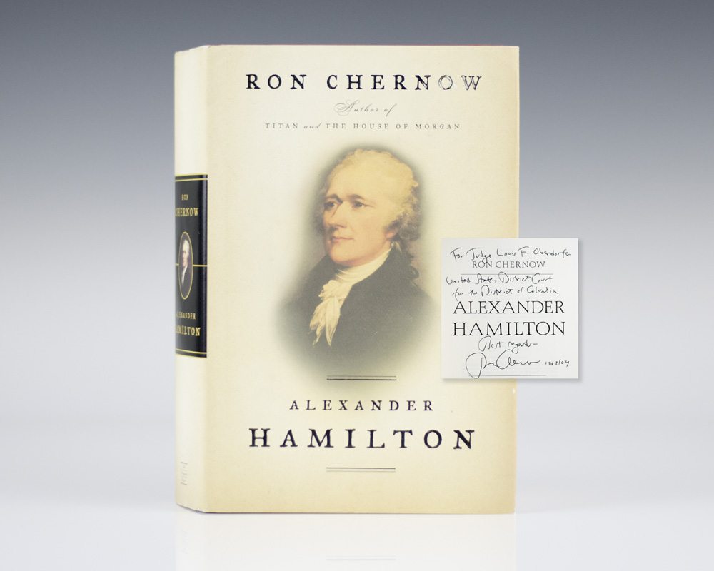 “Perseverance in almost any plan is better than fickleness and fluctuation": First Edition of Alexander Hamilton; Inscribed by Ron Chernow in the Year of Publication to Judge Louis Oberdorfer