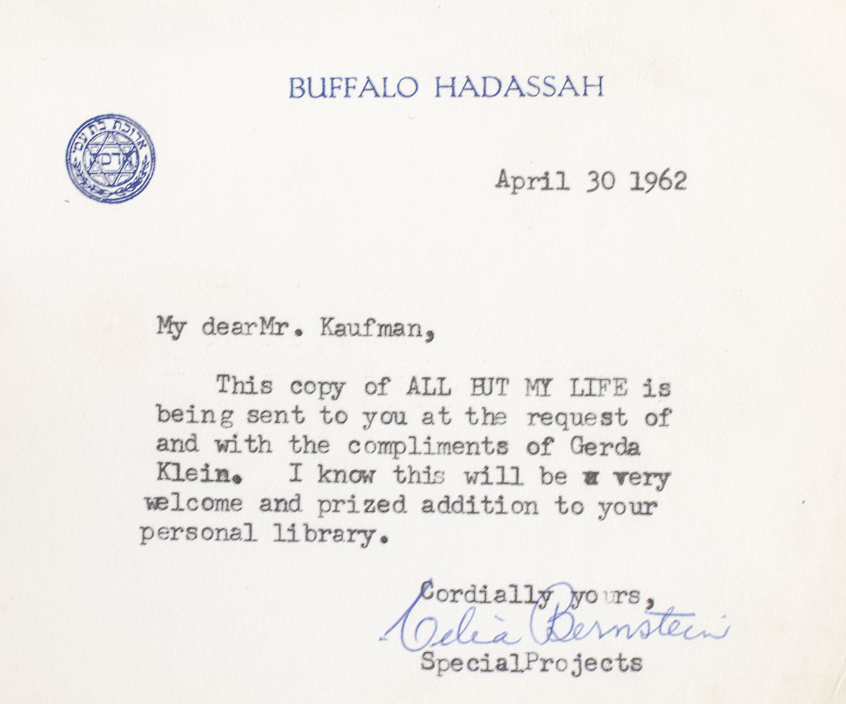 First Edition of Gerda Weissman Klein's All But My Life; Signed by Her