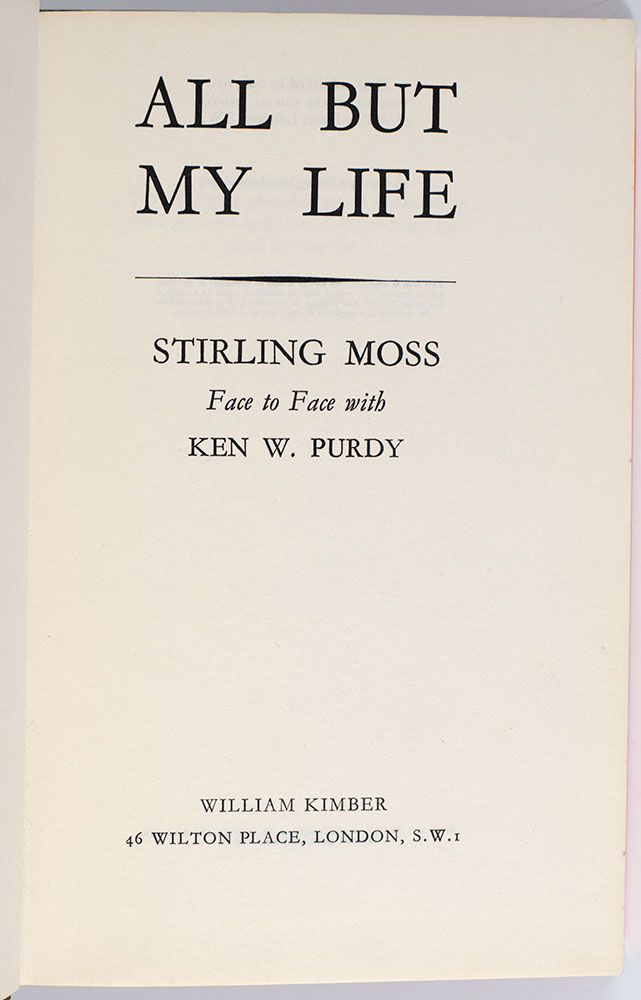 First Edition of Stirling Moss' All But My Life; Lengthily Inscribed by Him