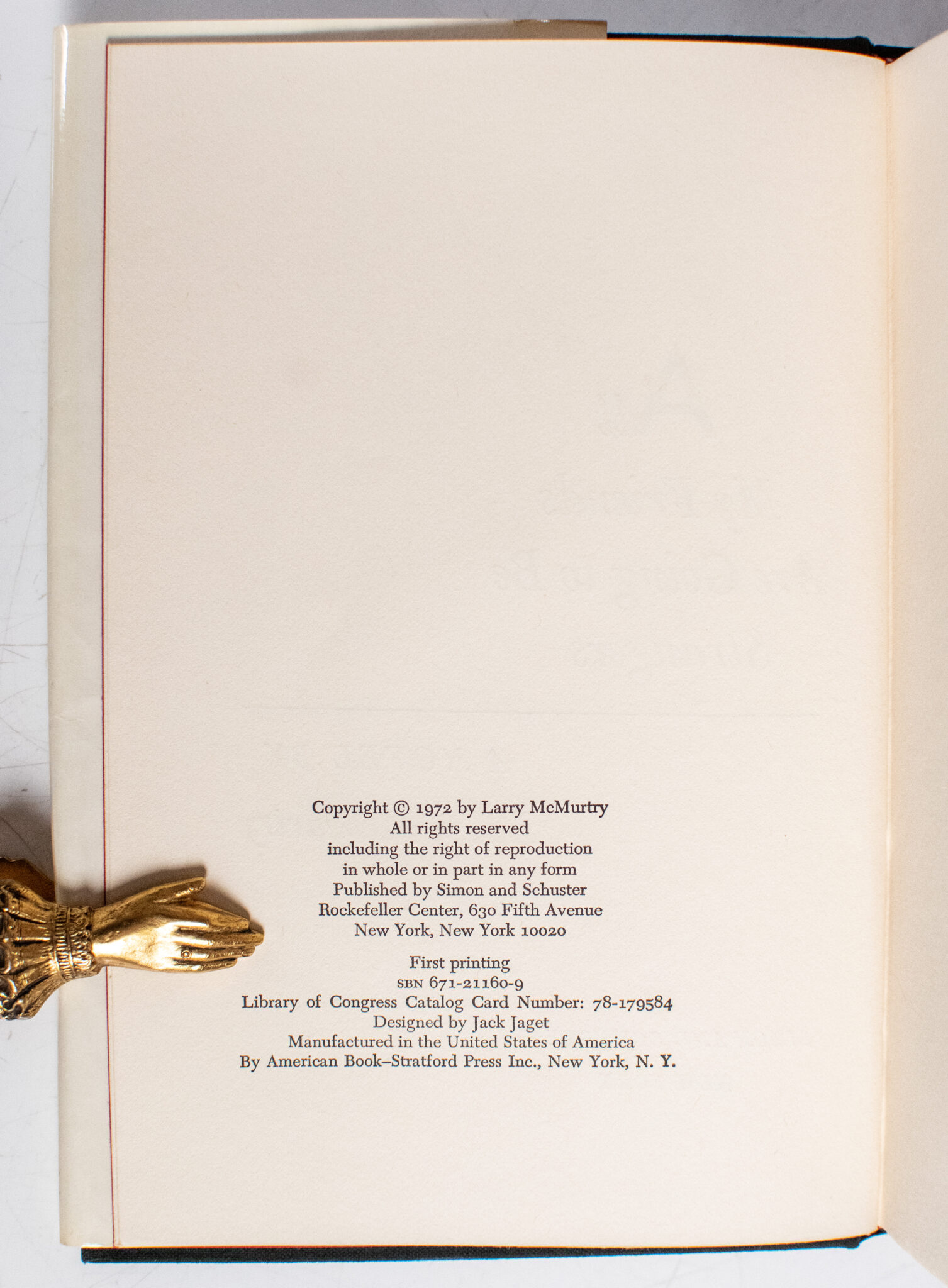 First edition of this early work by the Pulitzer Prize-winning author. Octavo, original cloth. Boldly signed by Larry McMurtry on the front free endpaper. Fine in a near fine dust jacket. Jacket design by Paul Bacon.