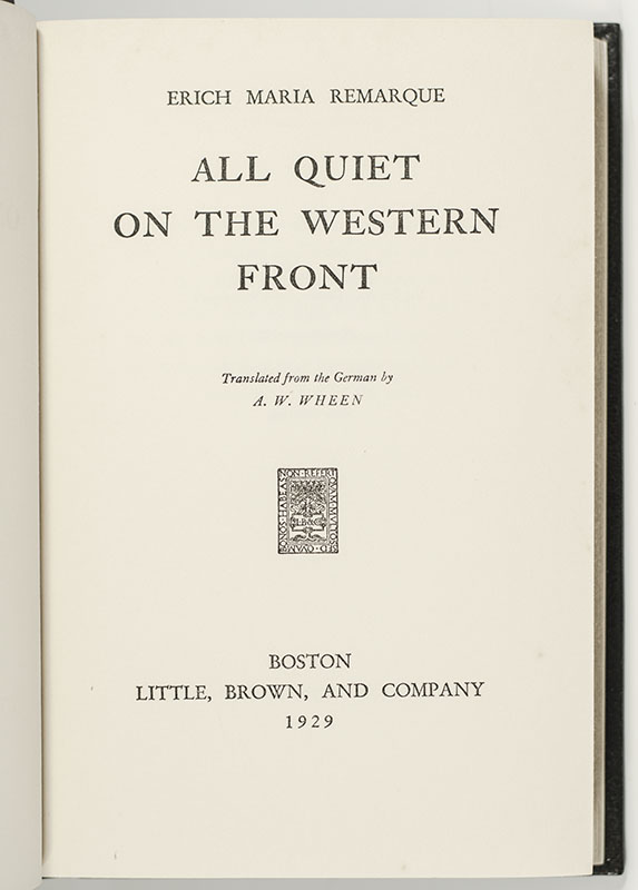 "It Is Very Queer That The Unhappiness Of The World Is So Often Brought On By Small Men": First Edition of All Quiet On The Western Front