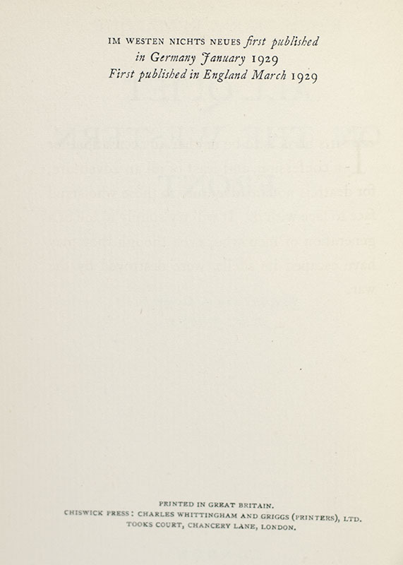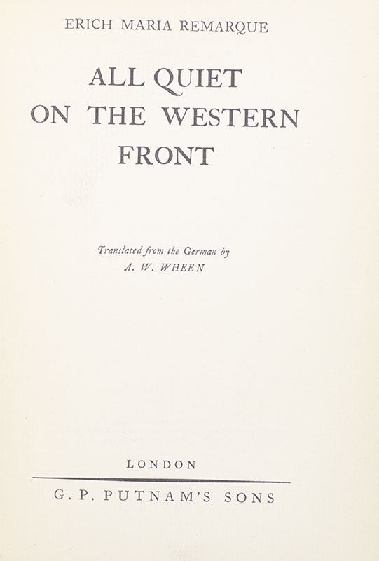 "It Is Very Queer That The Unhappiness Of The World Is So Often Brought On By Small Men": First Edition of All Quiet On The Western Front; Inscribed by Erich Maria Remarque