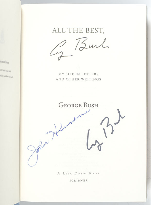 First edition of George H. W. Bush's life and letters. Octavo, original half cloth, illustrated. Signed by both George Bush and his chief of staff John Sununu on the title page. Fine in a fine dust jacket. Jacket design by John Fontana. Jacket photograph by Alexanders of Houston.
