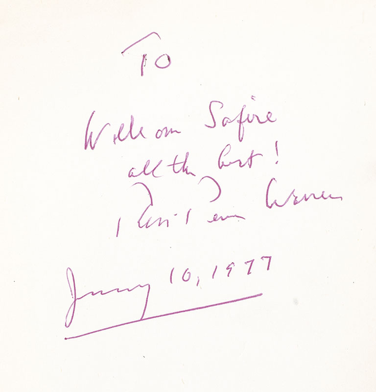 “If you want him to do it, you've got to change the picture of the world inside his head": Robert Penn Warrens Pulitzer Prize Winning Work; inscribed by him to presidential speechwriter and author William Safire