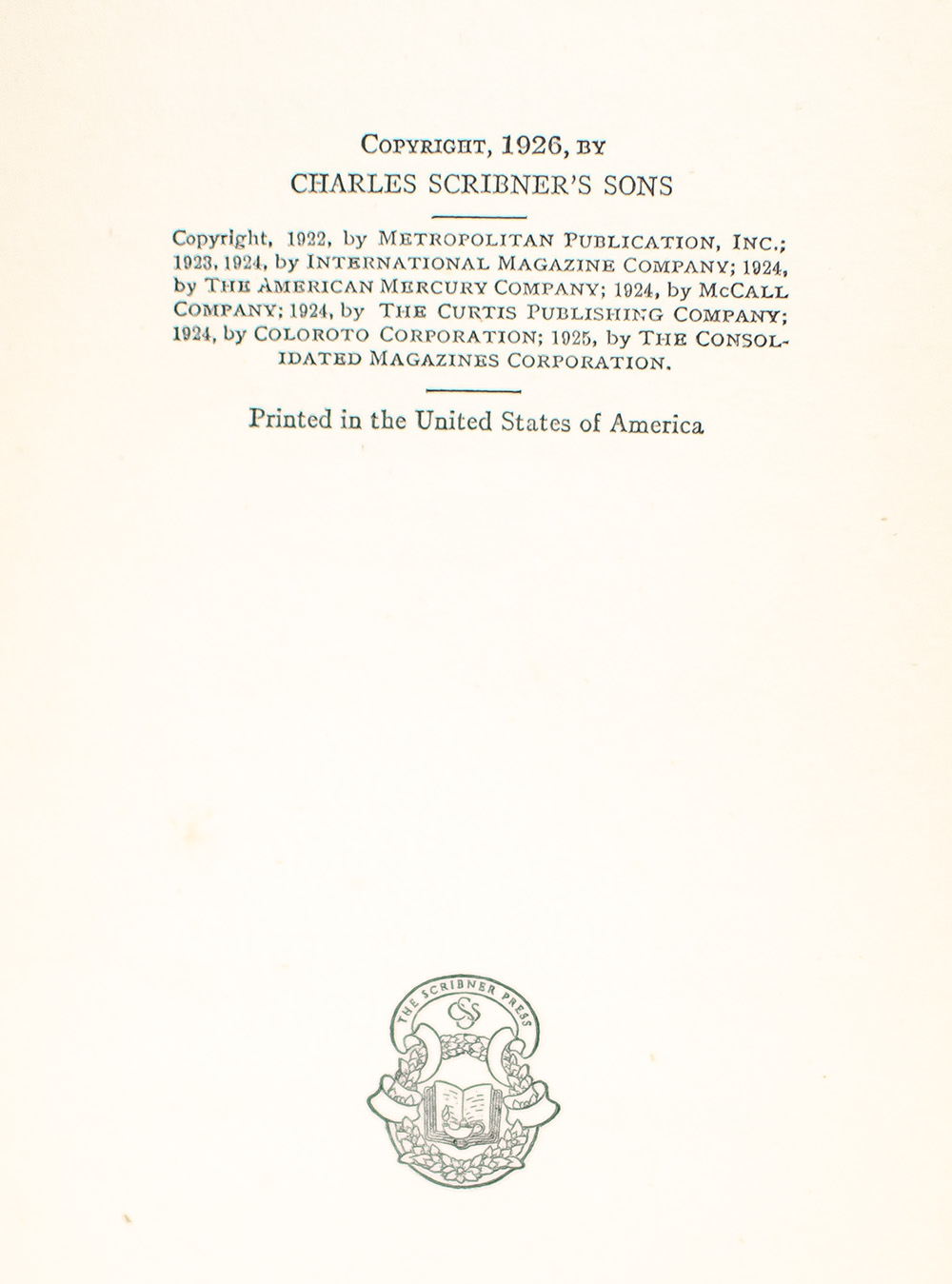 New York: Charles Scribner's Sons, 1926.