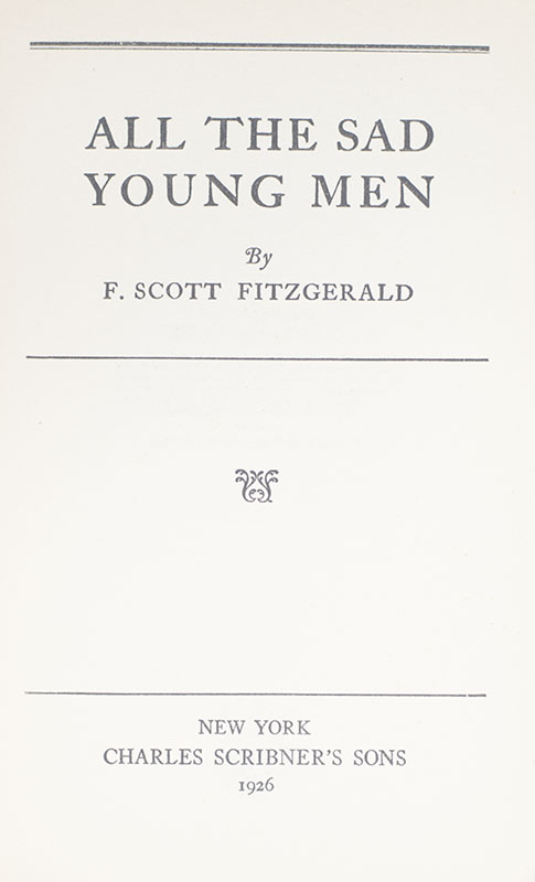 All the Sad Young Men is the third collection of short stories written by F. Scott Fitzgerald, published by Scribners in February 1926. Fitzgerald wrote the stories at a time of disillusionment. He was in financial difficulty, he believed his wife Zelda was romantically involved with another man, she had suffered a series of physical illnesses, and his play The Vegetable had been a failure. Upon publication—and somewhat belying the notion that Fitzgerald's most famous novel had not been enthusiastically received—the New York Times wrote, "The publication of this volume of short stories might easily have been an anti-climax after the perfection and success of 'The Great Gatsby' of last Spring. A novel so widely praised — by people whose recognition counts — is stiff competition. It is even something of a problem for a reviewer to find new and different words to properly grace the occasion. It must be said that the collection as a whole is not sustained to the high excellence of 'The Great Gatsby,' but it has stories of fine insight and finished craft." Ironically, in a letter nine months earlier, Fitzgerald had advised his editor Max Perkins against publicizing the book through the newspaper. "Rather not use advertising appropriation in Times—people who read Times Book Review won't be interested in me."