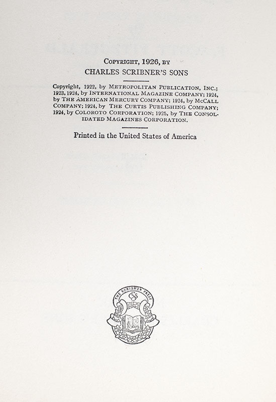 First edition, first issue of Fitzgerald's third collection of short stories. Octavo, original green cloth. Fine in a near fine first issue dust jacket with the woman's lips unbattered (Bruccolo, A12). Housed in a custom half morocco and folding chemise slipcase.