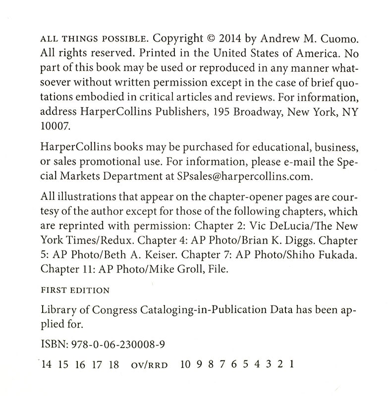 First Edition of Andrew Cuomo's All Things Possible; Signed by Him