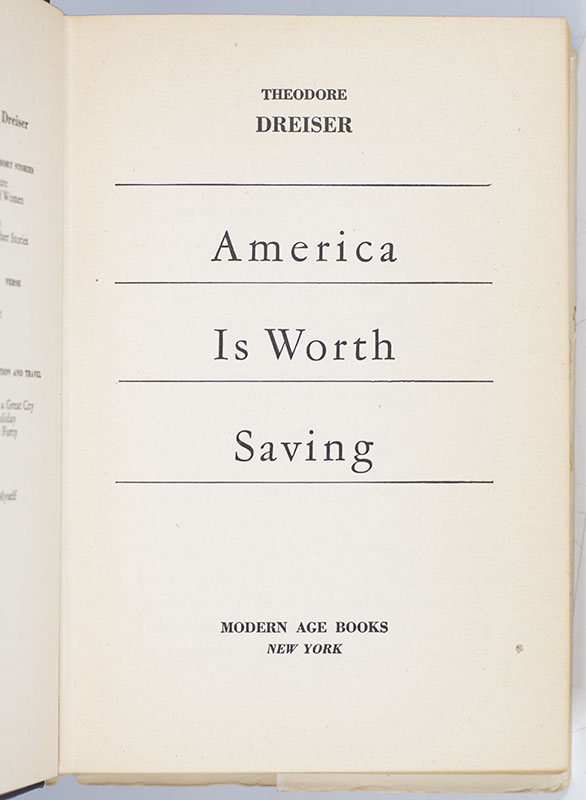 "Signed for whoever buys this book to aid the cause of peace": Theodore Dreiser's America is Worth Saving; Inscribed by Him