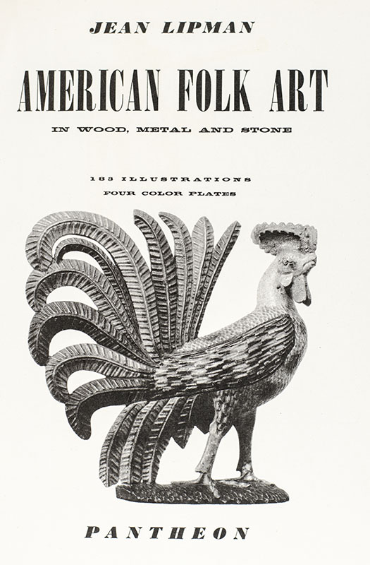 Art historian Jean Herzberg Lipman began collecting folk art in 1936 with the goal of furnishing a home in Connecticut. She soon became an associate editor of Art in America and came to specialize in the fields of American painted furniture and folk carving. American Folk Art in Wood, Metal and Stone was the first published survey on the topic including evaluations and examples of American ship figureheads, circus and carousel carvings, toys, and weathervanes furnished by the collections of the Museum of Modern Art, Newark Museum, Index of American Design, and many private collectors.