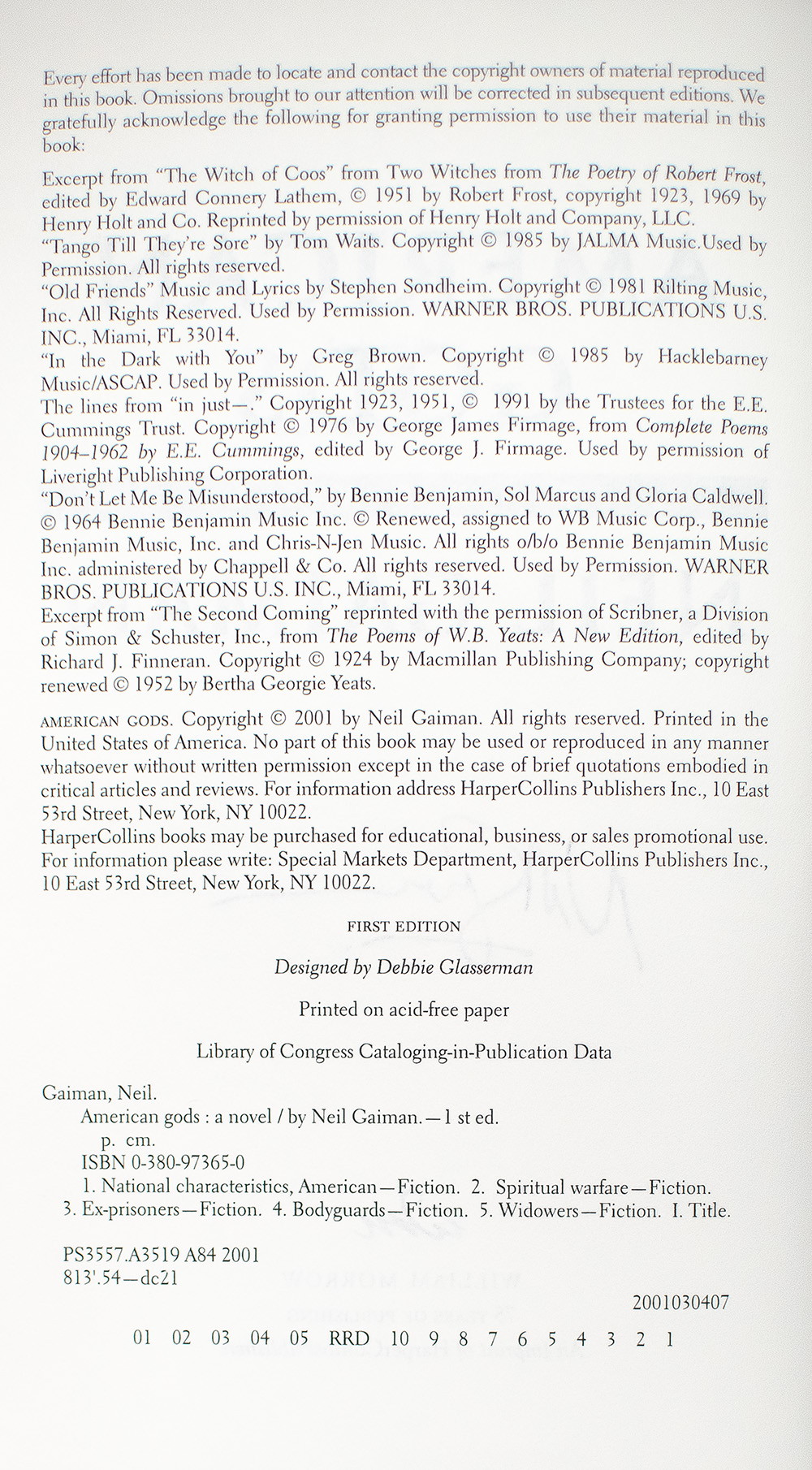 "Dream Dangerously": First Edition of American Gods; Signed by Neil Gaiman